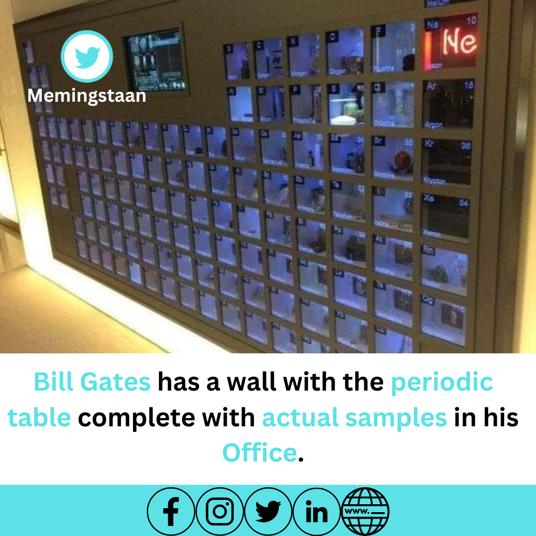 This unique feature of Gates’ office is not only a testament to his love for science and technology, but it also serves as a reminder of the importance of education and the pursuit of knowledge. By showcasing the periodic table in such a unique and interactive way, he is encouraging others to have a deeper appreciation for the sciences and to never stop learning.